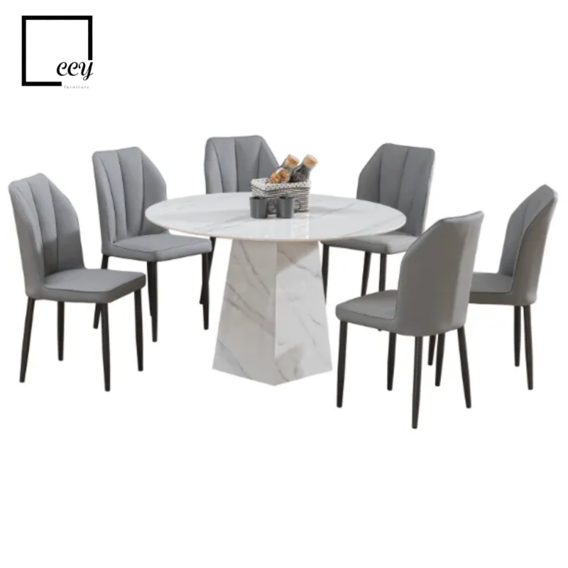 CHAIR: PU LEATHER & METAL, TABLE: FULL SET SINTERED STONE